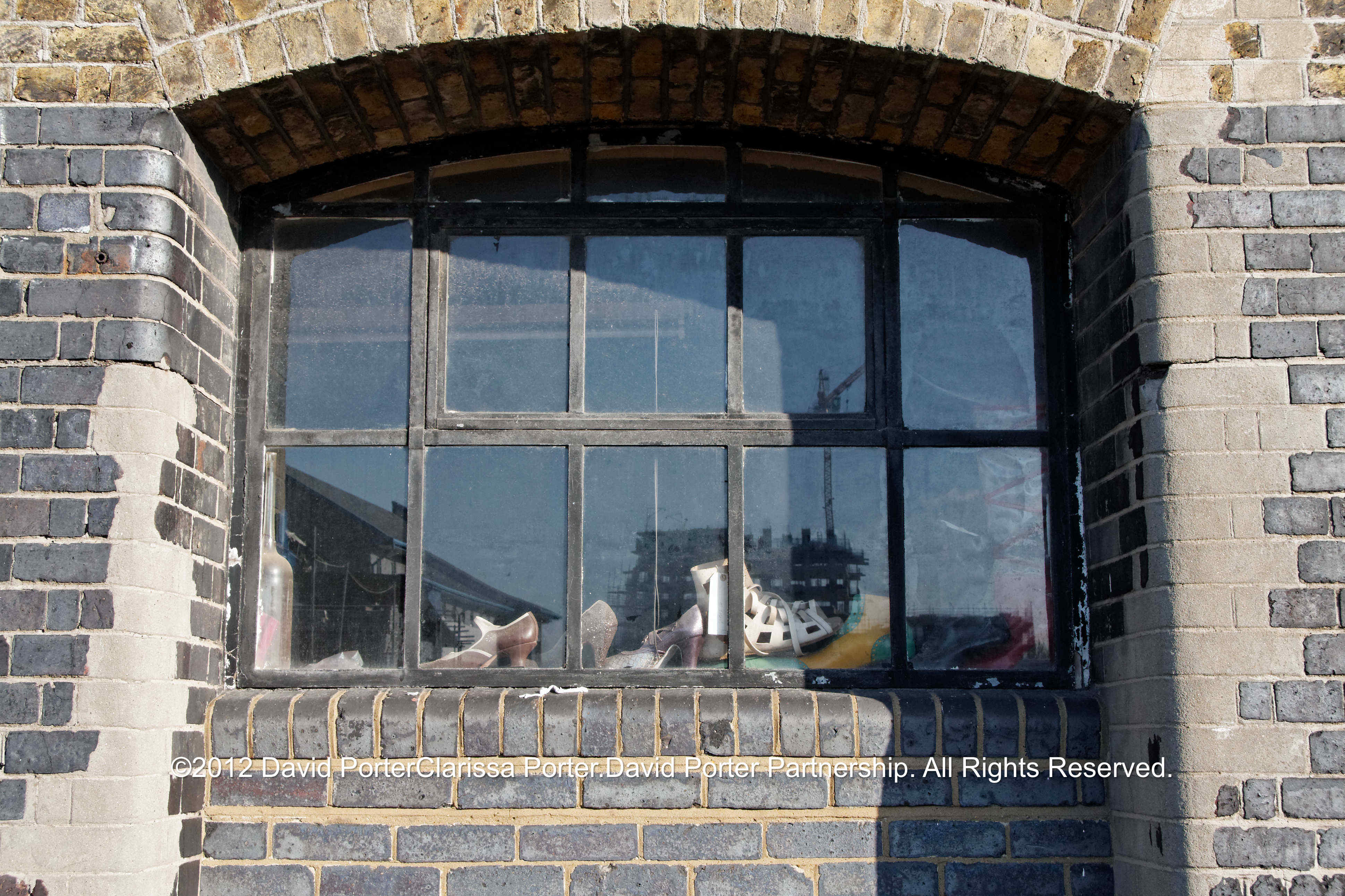 Window in the old Keiller Marmalade factory, Tay Wharf. Now home to Theatrical Shoemakers.