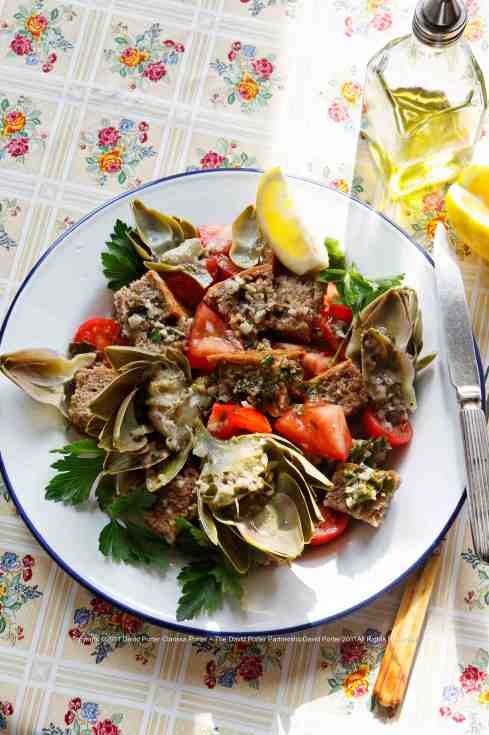 Put the bread in a bowl with the tomatoes and onions then shake over a generous amount of olive oil, you know your own taste, add the lemon juice and season with pepper and salt. Leave for about 20 minutes.